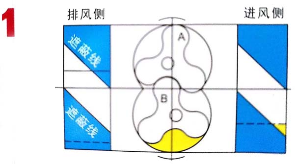 本羅茨風(fēng)機為消除這種因素而研究了螺旋形狀,下圖就本風(fēng)機螺旋形狀的要點進行說明。